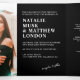Esta moderna invitación de boda negra y blanca plegable en tres hará una impresión impresionante en sus invitados. Cuenta con una hermosa mezcla de presentación de fotos y detalles, con una paleta de colores clásica en negro y blanco. La invitación es plegable en tres, para garantizar que toda la información necesaria para su día especial se transmita de manera elegante y organizada. La parte frontal presenta una foto de la feliz pareja que se abre para mostrar todos los detalles íntimos de su día especial. Con su estilo atemporal y estética clásica, esta invitación de boda plegable en tres seguramente dejará una impresión duradera.
