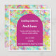 Esta invitación de boda vibrante presenta un fondo multicolor animado y una pieza central arqueada magenta en negrita. Perfecta para parejas que buscan un toque moderno y colorido para su papelería de boda. Fácilmente personalizable para su día especial