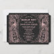 Invitación de boda negra Art Deco pavón dorado ros