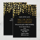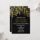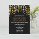 Invitación de boda negra con puntos de confeti de papel de aluminio dorado. Personalice la parte delantera y trasera para cualquier evento.