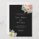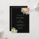 Presentamos nuestra impresionante invitación de boda moderna con hermosas flores pastel. Esta invitación es negra, creando un aspecto y sensación sofisticados y lujosos. Las flores de colores pastel en las esquinas superior derecha e inferior izquierda añaden un toque de color y elegancia al diseño.