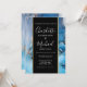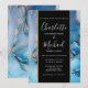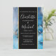 Elegante invitación de boda con nombres en estilo de firma, esta invitación de boda elegante se puede personalizar con su información en letras elegantes en una banda negra y dorada y fondo de ágata azul. Diseñado por Thisisnotme©
