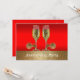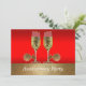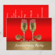 Esta invitación con tema del oeste tiene copas de champán con espuelas sobre un fondo rojo y dorado. El texto en la parte delantera dice Fiesta de Aniversario, pero se puede cambiar utilizando el botón personalizar para editar el texto.