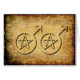 Hay un tema del vaquero a esta invitación de boda masculina gay de Wiccan. El fondo del pergamino lo da que antigüedad del oeste salvaje. Los acontecimientos principales son sin embargo los símbolos masculinos unidos juntos en la unión, cada uno con un pentáculo de Wiccan en su base.