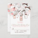Ilustraciones caprichosas de tarros mason rosados y cuerdas de corazones colgando de un árbol con dos pájaros de amor marrones rodeados de una variedad de flores rosadas y marrones. Es perfecto para bodas de verano, primavera y al aire libre.