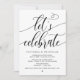 Bella caligrafía negra moderna, anuncio de escapada de novios, tarjeta de invitación (Let's celebrate). Esto es perfecto para la recepción de su boda y la fiesta de celebración posterior a la boda. Agregue sus detalles en la fuente / letra coincidente.