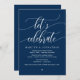 Hermosa caligrafía moderna en azul marino, anuncio de escapada de boda, tarjeta de invitación (Celebremos). Esto es perfecto para su recepción de boda y fiesta de celebración después de la boda. Agregue sus detalles en la fuente / letra coincidente. #TeeshaDerrick