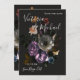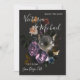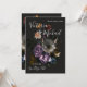 Elegante arreglo floral botánico de maestro holandés inspirado en Rembrandt contra un fondo oscuro. Flores a la luz de la luna de lavanda, azul, melocotón y blanco. Esta es para una invitación de guardar la fecha para una boda, pero puedes cambiar la redacción para adaptarla a tus necesidades.