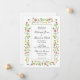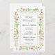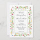 Preciosa invitación de boda con acuarela enmarcada por un delicado arreglo de coloridas flores silvestres.
