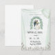 Invite a sus seres queridos a su día especial con esta hermosamente diseñada invitación de boda. Con una clásica ilustración de acuarela de una novia y un novio bajo un arco floral exuberante, esta tarjeta emana elegancia y romance. El diseño minimalista proporciona una apariencia limpia, perfecta para una celebración de boda atemporal. Totalmente personalizable para incluir sus nombres, fecha y detalles del lugar de la celebración.