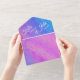 Sumérjase en la perfecta transición del apasionado púrpura, juguetón rosa, azul sereno y agua refrescante. ¡Experimente la fascinante danza de las emociones a través de la interacción de los colores! ¡Todo esto en una sola invitación tiene todo lo que necesitas! Encontrará otros productos en nuestra colección para una fiesta temática de bodas, una fiesta de soltera y productos para fiestas nupciales.