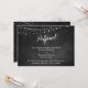 Sobre un fondo que representa una superficie de pizarra negra en textura, he colocado gráficos que representan cadenas de luz diseminadas por la parte superior. La palabra "Pospuesto" en la parte delantera y "Amor" en la parte trasera fueron creadas usando una fuente moderna y giratoria. Utilice los campos de plantilla para agregar sus datos personales y hacer de este diseño distintivo su propio. Por favor contacte con cualquier solicitud especial o para personalizar la asistencia.
