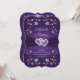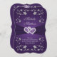 Esta romántica y dramática invitación a una boda con forma de corchete floral morado y plateado tiene un RIBBON IMPRESO, un par de diamante y purpurina IMPRESIONADOS se unieron a los corazones de las joyas y se ven flores de plata. ****NOTE que todo se imprimirá tal como aparece en su monitor, así que si tiene problemas de tipografía, alineación o dimensionamiento, por favor contáctame antes de pedir ayuda. No puedo hacer nada una vez que la orden se hace con Zazzle. Si necesita cualquier otro elemento que coincida, envíe un correo electrónico a niteowlstudio@gmail.com.
