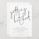 Invitación de casamiento de código QR con guión de corte informal. Añade tu código QR al sitio web de tu boda en la parte posterior para que tus invitados puedan ver todos los detalles en línea sin necesidad de gabinetes separados. Conseguir un Hitched está en la parte superior de un guión elegante. Personaliza fácilmente el resto del texto. El texto y el fondo se pueden cambiar a cualquier color a través de la opción personalizada.