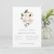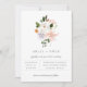 Arreglo floral de acuarela rosa suave, blanco, violeta y naranja elegante, invitación de boda. Diseño de tipografía gris moderno y chic. La parte trasera de la tarjeta presenta un color sólido mostrado en gris.