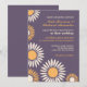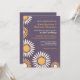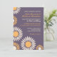 Invitación de boda con fondo púrpura y patrón de girasoles blancos y amarillos. ¿Está planeando una boda en primavera o verano con hermosas flores por todas partes? Entonces, quizás esta sea la tarjeta perfecta para usted. Personalice la redacción y las fuentes para que se ajusten a su gusto. Visite mi tienda para ver más variaciones de este diseño en tarjeta de Save the Date, etiqueta de dirección y más.