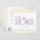 Personalizable con una plantilla de invitación a la ducha de novia con diseño moderno de tipografía con un anillo de compromiso de boda de diamantes sobre el tema de los colores pastel de lila y crema. Personalízalo con tu propio texto en ambos lados o personalizar más si deseas ajustar el diseño o elegir un tamaño de invitación diferente.