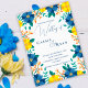 Invitación de Boda Floral Azul Romántica y Amarilla. Celebre su historia de amor con esta Invitación de Boda Floral Azul y Amarilla Romántica, perfecta para bodas de primavera y verano. Este diseño elegante presenta un arreglo floral suave e inspirado en la acuarela de delicadas flores azules y alegres flores amarillas, creando un aspecto encantador y atemporal que es sofisticado y fresco. Contra un fondo blanco clásico y limpio, esta invitación destaca los detalles de su boda en tipografía elegante y fácil de leer que agrega un toque moderno a su ambiente romántico.