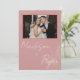 Esta invitación de boda rosa con foto presenta un romántico fondo de rosa polvoriento combinado con tipografía de letra cursiva elegante y una foto personalizada de la pareja. Los tonos suaves de rubor y el diseño minimalista crean un diseño atemporal y moderno perfecto para bodas con estilo.