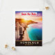 Ofrezca a sus invitados una vista del paraíso con este arte clásico de turismo de alta calidad que presenta la silueta de Honolulu al atardecer. Su encanto vintage es ideal para su boda de destino tropical o invitación de guardar la fecha.