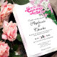 Este fondo rosa está acompañado de un diseño de letra a mano en rosa caliente que dice "You're Cordially Invited" (Está usted cordialmente invitado) como título sin un contorno que lo rodee. Decorando el borde derecho del fondo está mi ilustración suave y delicada de un jarrón de vidrio con rosas blancas y rosadas dentro. La invitación está personalizada para que usted escriba su información personal. Todo mi arte, que incluye fondos, arte de letras y bordes, es creado con orgullo SIN IA y SIN arte de terceros. En otras palabras, cada artículo es creado 100% por mí – Christie Taylor.