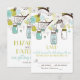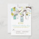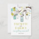 Ilustraciones caprichosas de frascos mason azules colgando de un árbol con cuerdas de corazones, dos pájaros enamorados y una variedad de flores azules y verdes. Esta invitación de boda tiene artículos coincidentes. Esta invitación de frasco mason sería perfecta para bodas de primavera, invierno y al aire libre.