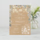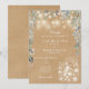 Luces de cadena bonitas, tarros de mason y una cascada de exuberante vegetación floral hermosa enmarca los detalles de la celebración de su boda especial, presentados en tipografía elegante sobre un fondo kraft rústico. Diseñado por Thisisnotme