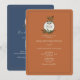 La combinación de terracota terrosa y azul marino creará una atmósfera cálida e invitante para tu boda de otoño. El monograma de hojas rústicas añade un toque boho encantador, y el código QR es una forma genial de hacer que las respuestas sean perfectas. Es la combinación perfecta de elegancia minimalista y comodidad moderna.