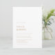 Esta hermosa y elegante invitación de boda, simple y minimalista, está impresa con una fuente azul marino. La invitación combina dos fuentes serif tradicionales, creando un aspecto elegante y moderno. Edite fácilmente la plantilla con los nombres de la novia y el novio y los detalles de la boda. Invitación de boda simple beige blanca. El color es hex #D6C1A6.