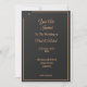 Invitación de boda simple, negro y dorado. nombre, horarios, fechas y ubicación totalmente personalizables según tus necesidades