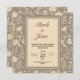 Es una invitación de boda diseñada con ternura con patrones de flores y hojas.