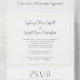 Las flores de plumeria, invitación de boda blanca es todo en uno. La invitación y tarjeta de respuesta de una pieza se abre con el monograma de la boda dentro de la solapa. Las flores blancas de frangipani, o plumeria, decoran la solapa y la tarjeta de RSVP. Un fondo claro de flores también es parte del exterior donde se imprimirán las direcciones. El texto de la invitación está en el centro, con una tarjeta de respuesta desmontable en la parte inferior. Los invitados pueden rellenar y enviar fácilmente la respuesta por correo como una postal, ¡también tiene el franqueo de postal! Se proporcionan áreas en el exterior de la tarjeta para las direcciones: dirección de devolución, dirección de correo y dirección de devolución de RSVP. Todo el texto es fácil de cambiar o eliminar según sea necesario. Ahorre dinero y tiempo con invitaciones de boda personalizadas todo en