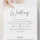 Invitación de boda todo en uno estilo boho floral rosado con hierba de pampas
