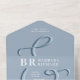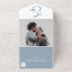 Sencilla, contemporánea, minimalista, única invitación de boda todo en uno en azul polvoriento con RSVP, foto y elegante ampersand de moda - monograma con iniciales de la novia y el novio. Agrega tu foto y RSVP.