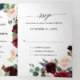 Invitación de boda trifold roja borgoña marina