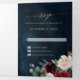 Tarjeta de invitación de boda trifold de acuarela floral romántica elegante y moderna con detalles y tarjetas de respuesta, cuenta con un ramo de borgoña / marsala, rosa pálido, azul marino, melocotón, rosas de acuarela con follaje a juego. Perfecto para una boda de otoño / mediados de verano. Por favor, busque más diseños y variaciones coincidentes en mi tienda "blissweddingpaperie". Y no dude en contactarme para una mayor personalización o artículos coincidentes
