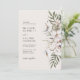 Invitación de boda tropical boho. Chic y moderna, esta elegante invitación de boda presenta hermosas flores tropicales de acuarela pintadas a mano en crema e ivorio con hojas de palma de color verde salvia dispuestas en un ramo trendy. El fondo es beige y el texto es negro. La parte trasera de la invitación incluye la misma obra de arte. Encuentra artículos coincidentes en la Colección de boda tropical boho.