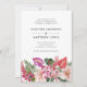 Celebre su amor y escape al paraíso con esta elegante invitación de boda tropical. Perfecta para bodas de destino en la playa y la costa, esta invitación de boda está llena de toques elegantes y modernos, flores románticas y colores vibrantes. La impresionante obra de arte en acuarela incluye hojas verdes de palma y monstera, orquídeas magenta y fucsia brillantes, y flores de hibisco rosadas. La parte trasera incluye un patrón coordinado. Encuentre artículos coincidentes en la colección de bodas de flores tropicales coloridas.