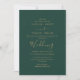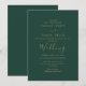 Esta elegante invitación de boda presenta delicada caligrafía dorada combinada con ricos tonos verdes, ideal para bodas atemporales, formales o inspiradas en la naturaleza. Una sofisticada mezcla de elegancia y encanto terrenal. Totalmente personalizable para coincidir con el tema de su boda.