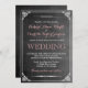 Invitación de boda estilo vintage y rústico con fuente rosa y blanca. Decorada con borde de flores victorianas y fondo de pizarra. Diseño clásico para tu día especial. Personaliza la fuente y el texto para cualquier ocasión como fiesta de soltera, baby shower, fiesta de compromiso, despedida de soltera, fiesta de cumpleaños y más.
