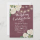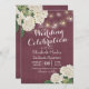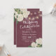 Plantilla de tarjetas de invitación a la celebración de bodas - Hidrángulos blancos Luces florales y de cuerdas sobre fondo rojo borgoña vintage. Un diseño perfecto para tu gran día. ¡Todo el estilo de texto, colores, tamaños se pueden modificar para adaptarlo a sus necesidades!