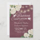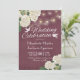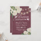 Plantilla de tarjetas de invitación a la celebración de bodas - Hidrángulos blancos Luces florales y de cuerdas sobre fondo rojo borgoña vintage. Un diseño perfecto para tu gran día. ¡Todo el estilo de texto, colores, tamaños se pueden modificar para adaptarlo a sus necesidades!