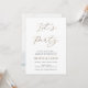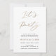 Este anuncio de boda informal también sirve como invitación para la recepción de la boda. La invitación de recepción a doble cara presenta "Vamos a festejar" en letras de lámina de oro falso con texto que anuncia el matrimonio de los recién casados y los invita a una recepción de boda informal. Personalice con su foto en el reverso.