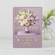 Un ramo de flores pastel colorido colocado en una mesa redonda. Un ramo de flores es un símbolo de amor y romance. El color del fondo coincide con los colores pastel de las flores. Tarjeta personalizable.