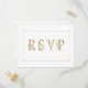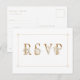 Elegante "RSVP" adornado con flores doradas y follaje, rsvp de boda con tarjeta postal de petición de canción.