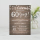 Invitación de Bodas de 60 años. Fondo de Madera Rústica. Luces de Cadena. 1º, 2º, 3º, 4º, 5º, 10º, 15º, 20º, 25º, 30º, 35º, 40º, 45º, 50º, 55º, 60º, 65º, 70º, 75º, 80º, Cualquier Año. Cumpleaños de Adulto. Fiesta de Cumpleaños de Hombre o Mujer. Para personalizar aún más, haga clic en el botón "Personalizar" y use nuestra herramienta de diseño para modificar esta plantilla.