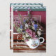 La parte delantera de esta moderna invitación personalizada es nuestra fotografía original de hermosas flores en una teterita antigua. El número de años se muestra en blanco. La parte trasera es la misma foto, con texto de invitación morado. Una hermosa invitación a una fiesta de bodas de 65 aniversario. Fotografía original de Marcia Socolik. Todos los derechos reservados © 2015 Alan & Marcia Socolik.