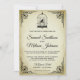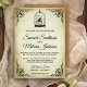 Sorprenda a sus huéspedes con esta invitación de boda de estilo vintage con un elegante borde ornamentado negro y una hermosa jaula de pájaros negros contra un fondo rústico de pergamino. Simplemente agregue los detalles de su evento en esta plantilla fácil de usar para convertirla en una invitación única.