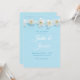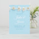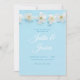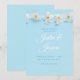 Invitaciones a la boda azul claro con bonito y delicadas flores blancas.
