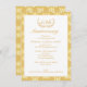 Esta invitación de aniversario de bodas de oro cuenta con un elemento decorativo, área de texto blanco y un fondo con patrón de damasco. Está lista para ser personalizada y es ideal como invitación de aniversario de bodas de oro para una fiesta semiformal o formal.